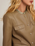 • Chaqueta sin cuello en tejido revestido con forro interior